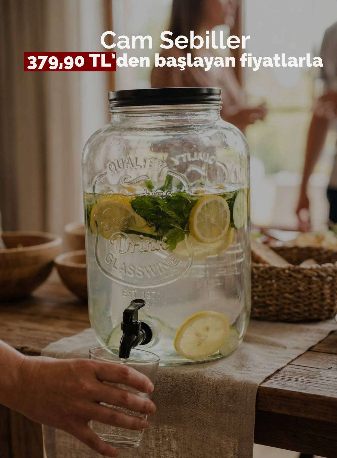 1 Litre Akasya Saplı ve Kapaklı Cam Yağdanlık – Ölçekli Tasarım
